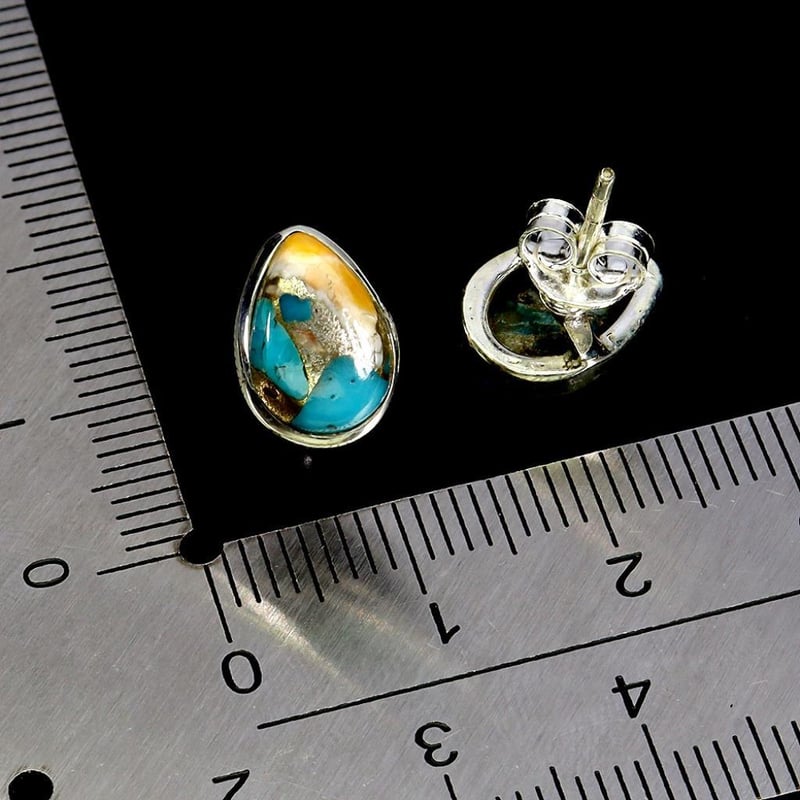 Natural Kingman Turquoise Stud Earrings. Made In Solid Sterling Silver And Plated In14K White Gold. Features Natural Kingman Turquoise. Earrings Measure 11X8Mm