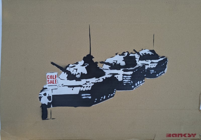 AFTER BANKSY Stencil On Cardboard Title: Golf Sale Image Size: 36cm x 51cm Edition: 7/10 Signature Details: Signed Lower Right Condition: Good - Refer To Images The Art Was Originally From Banksy'S 2015 'Dismaland' Exhibition 585086+11