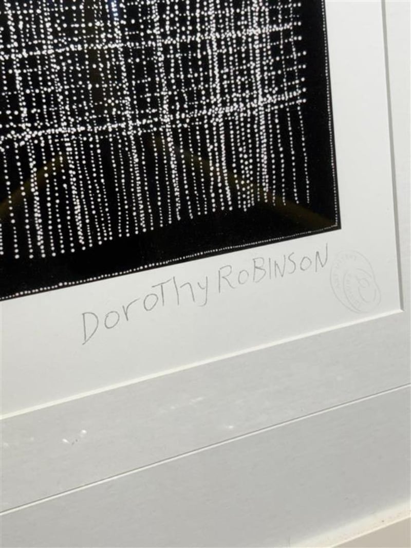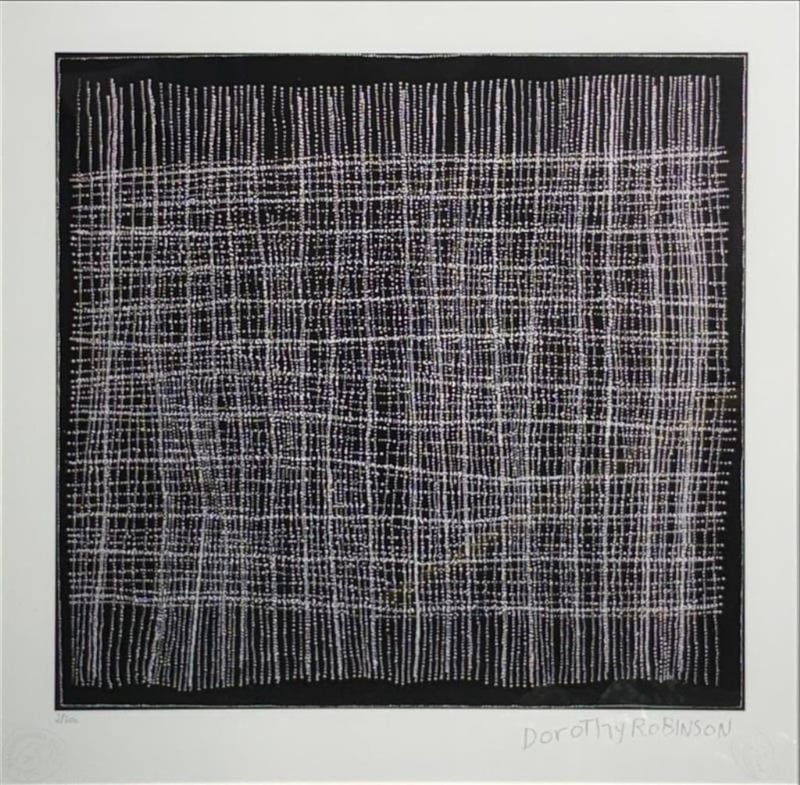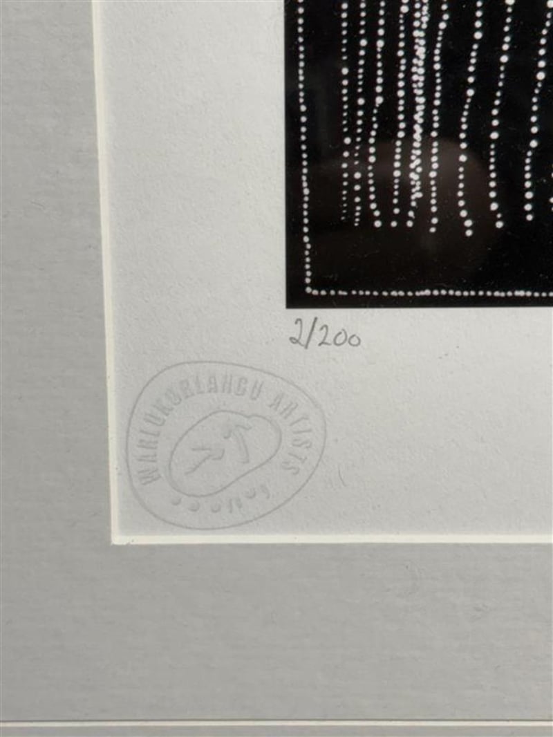 DOROTHY ROBINSON NAPANGARDI (1956-2013)Limited Edition Lithograph PrintImage Size: 52cm x 52cmFrame Size: 82cm x 82cmItem Size: Height: 82cm, Width: 82cm, Depth: 2cm, Weight: 5KgEdition: 2/200Signature Details: Signed Lower RightWarlukurlangu Artists Blind Stamp Lower Left CornerCondition: Good - Refer To ImagesFramed And Matted Under Glass.Sr233093+1