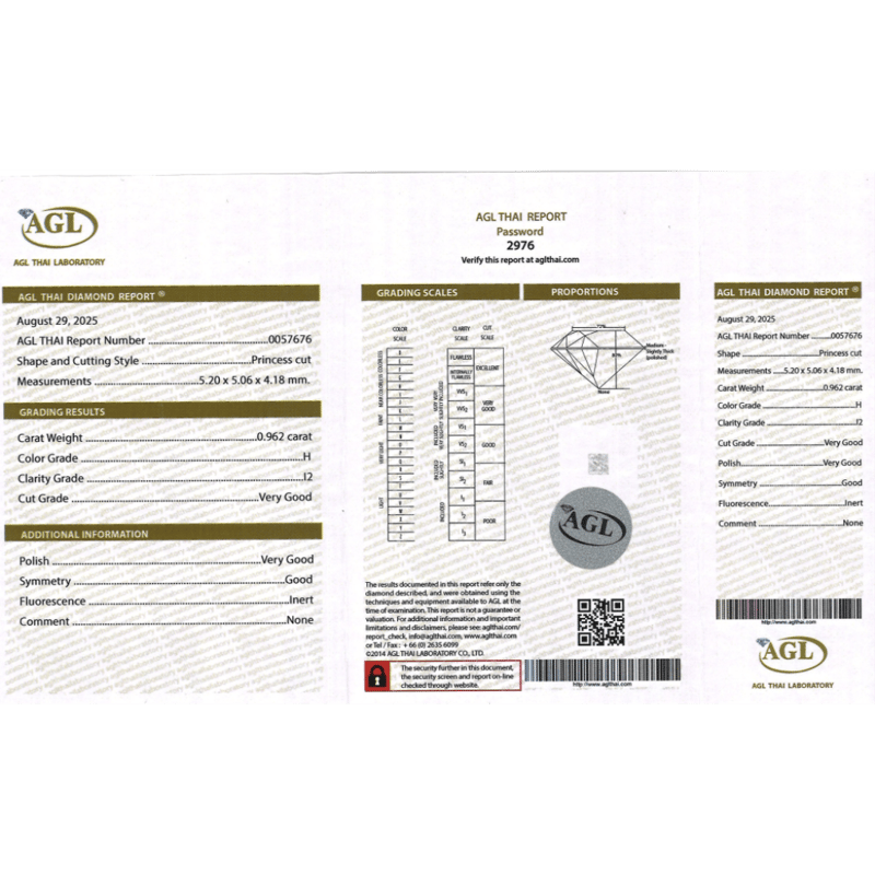 0.962CT CERTIFIED, NATURAL DIAMOND Princess Cut, H Colour, I2 Clarity, Loose, Unset. Stone Comes Sealed With Agl Report: 0057676. Valuations Provided by an Independent Third-Party Professional Not Directly Associated With Lloyds Auctions at AUD $$10,200.00This valuation has been conducted by an independent third-party professional. The valuation amount is an assessment by the issuing valuer and does not reflect the auction value of the item. Any inquiries regarding the valuation should be directed to the issuing valuer (refer to contact details on the certificate), as Lloyds Auctions has no affiliation or influence over the valuation, the valuer, or the stated amount. Condition: Good - Refer Images 0645942+2014