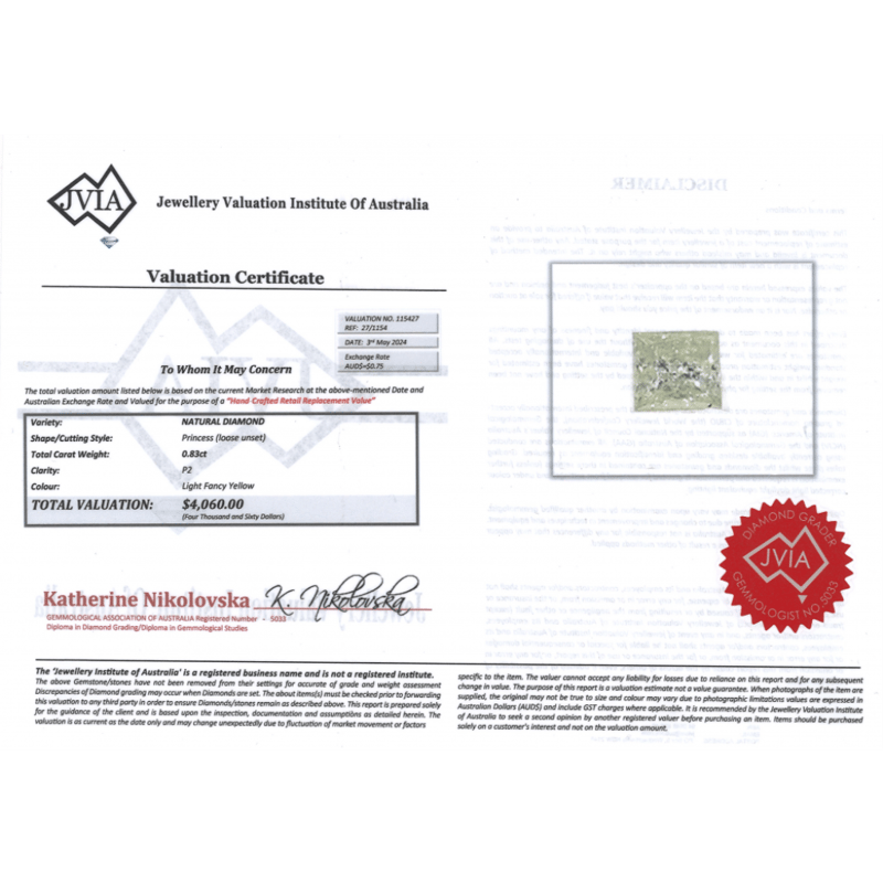 Princess Cut, Fancy Light Yellow, P2 Clarity, Loose, Unset.