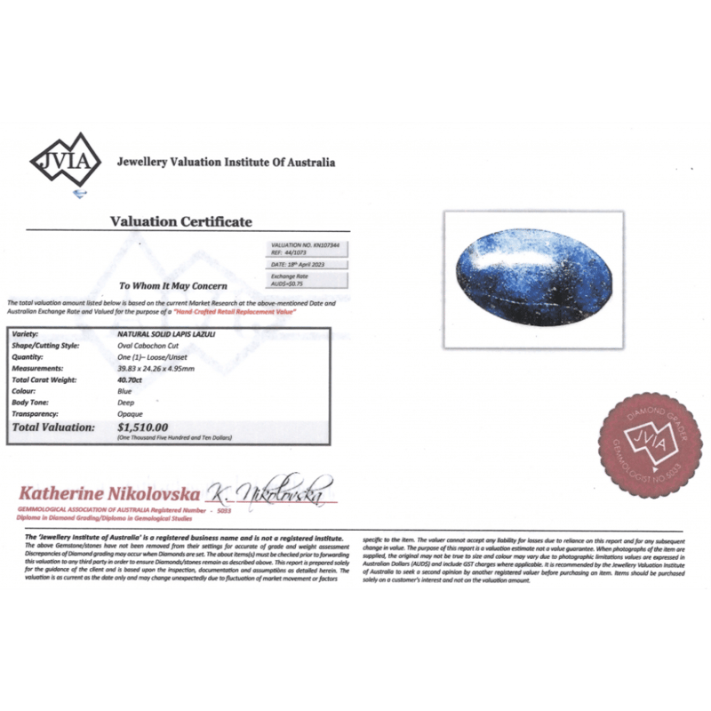 This valuation has been conducted by an independent third-party professional. The valuation amount is an assessment by the issuing valuer and does not reflect the auction value of the item.