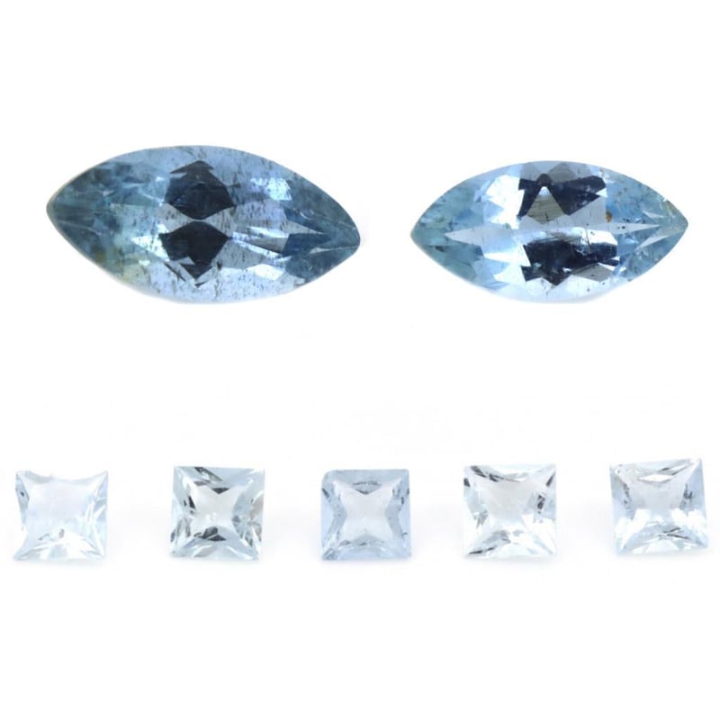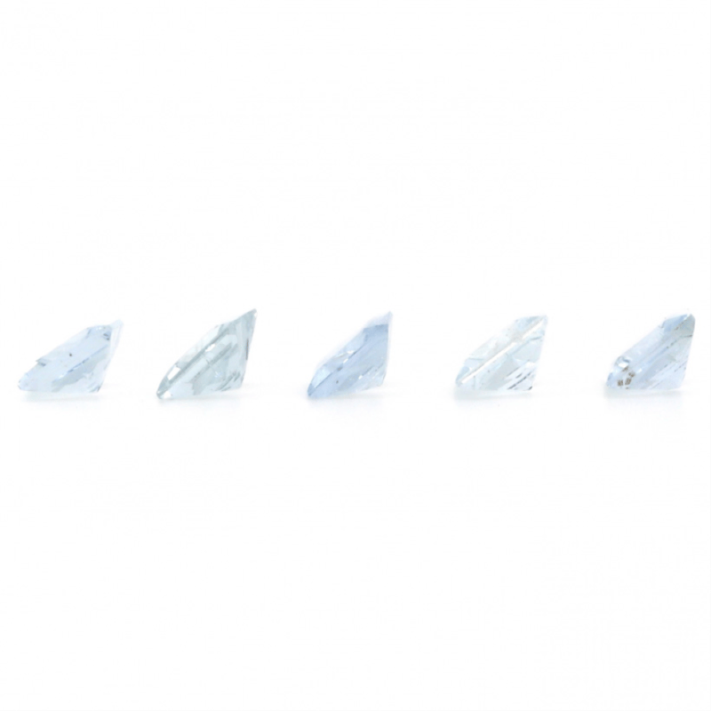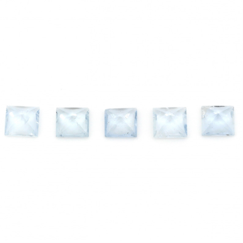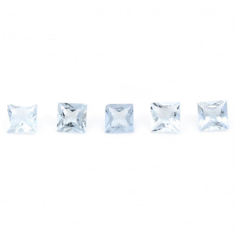 6.19Ct Tsw X 5, Natural Beryl Aquamarines, Princess Cut, Medium-Medium Deep Blue, Slightly Included, Loose, Unset.