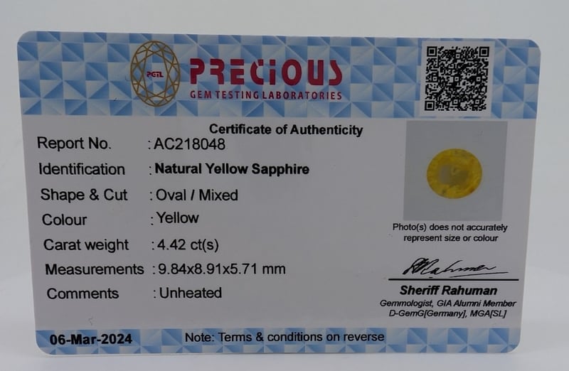 Accompanied By Precious Gem Testing Laboratories "Certificate Of Authenticity, Report #Ac218048