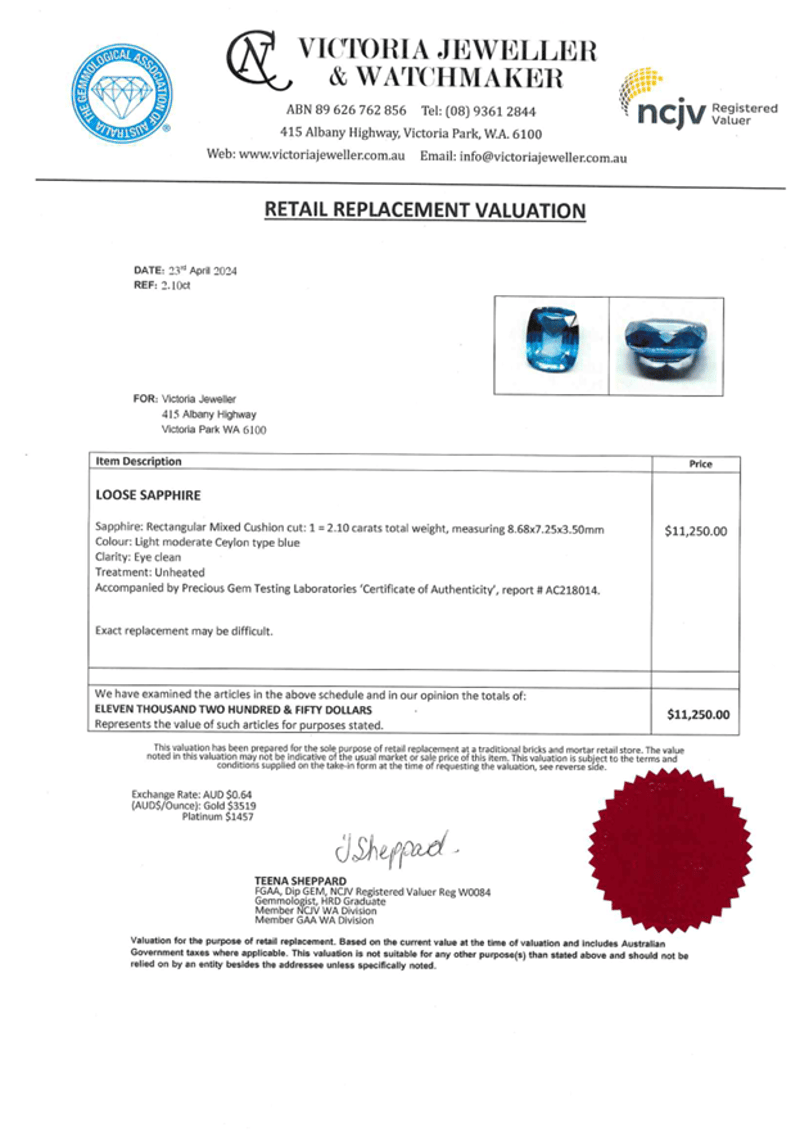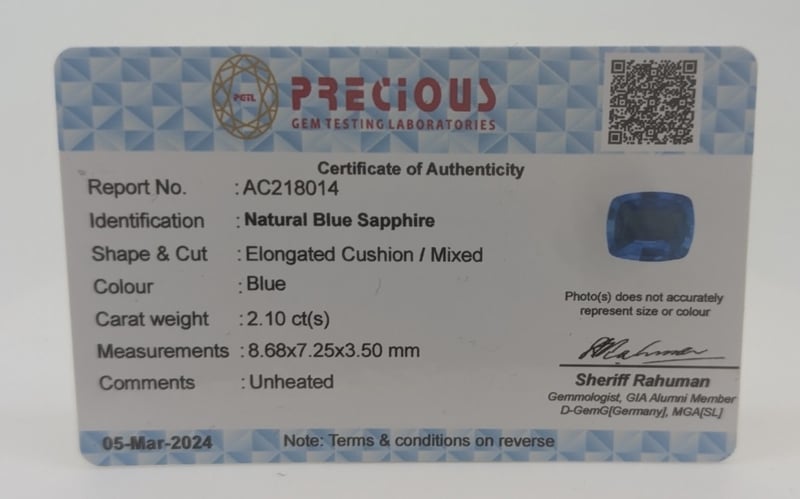 Cut: Rectangular Mixed Cushion, Colour: Light Moderate Ceylon Type Blue, Clarity: Eye Clean
