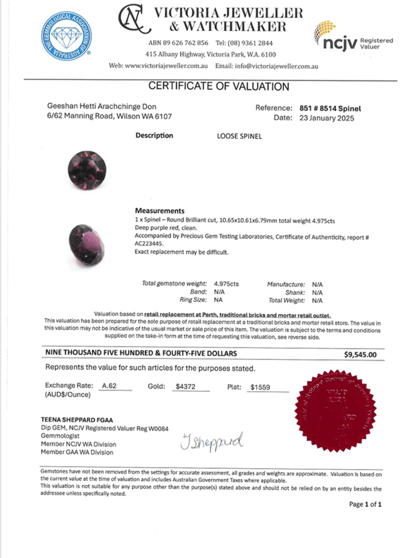 This valuation has been conducted by an independent third-party professional. The valuation amount is an assessment by the issuing valuer and does not reflect the auction value of the item.