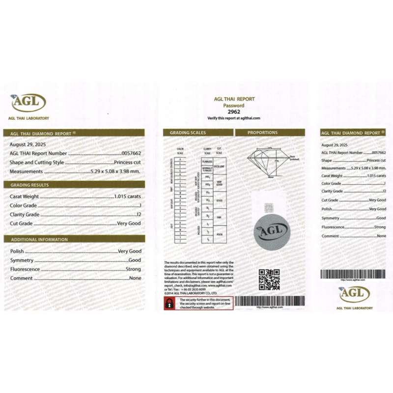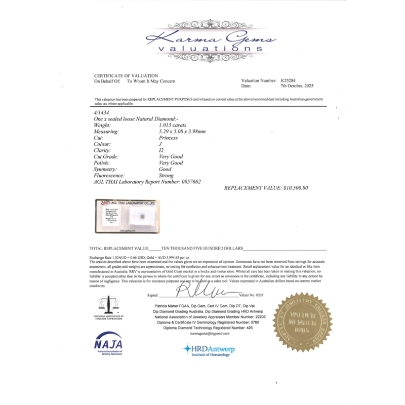 Princess Cut, J Colour, I2 Clarity, Loose, Unset. Stone Comes Sealed With Agl Report: 0057662.