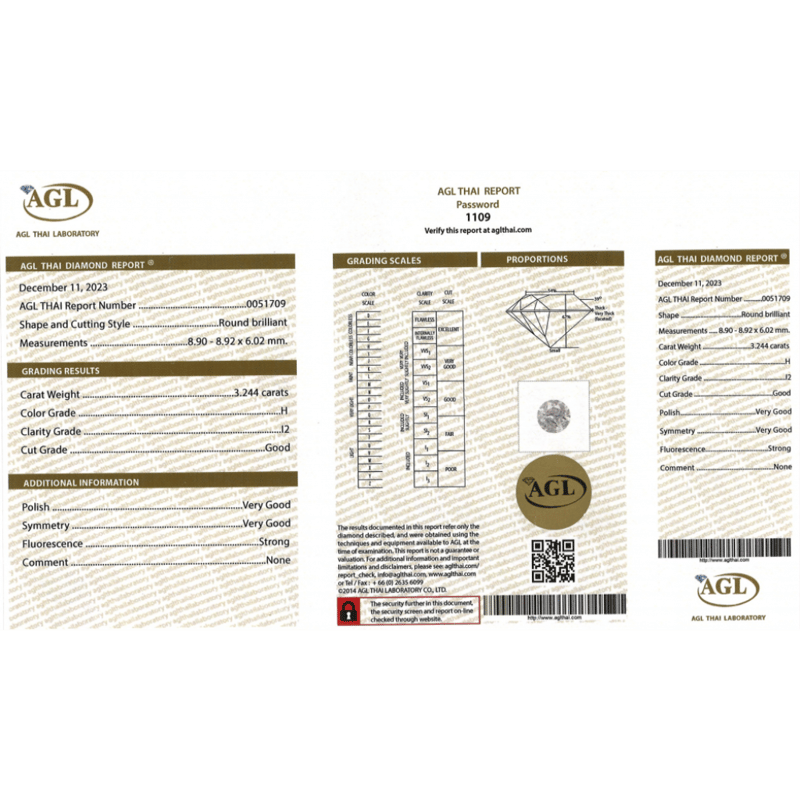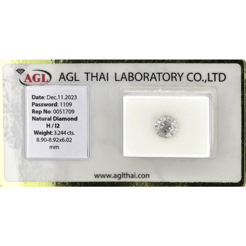 Round Brilliant Cut, H Colour, I2 Clarity, Loose, Unset. Stone Comes Sealed With Agl Report: 0051709.