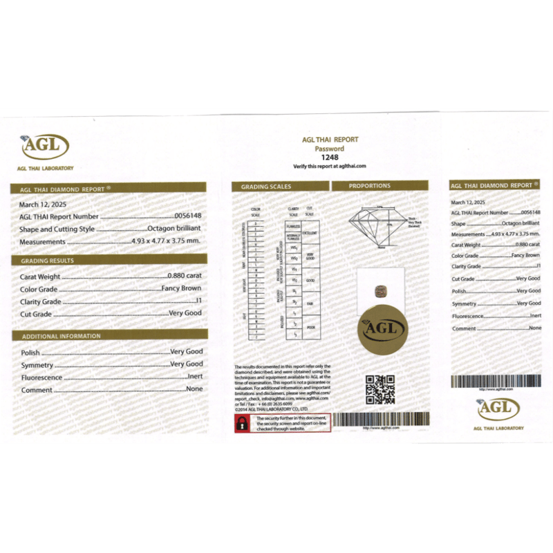 Octagon Brilliant Cut, Fancy Brown, I1 Clarity, Loose, Unset. Stone Comes Sealed With Agl Report: 0056148.