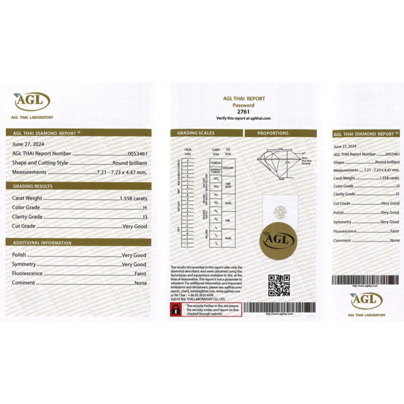 Round Brilliant Cut, H Colour, I3 Clarity, Loose, Unset. Stone Comes Sealed With Agl Report: 0053461.