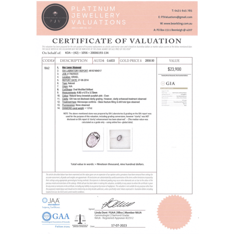 Oval Modified Brilliant Cut, Fancy Brownish Purple-Pink, Loose, Unset. Stone Comes With Gia Report: 6167484017.