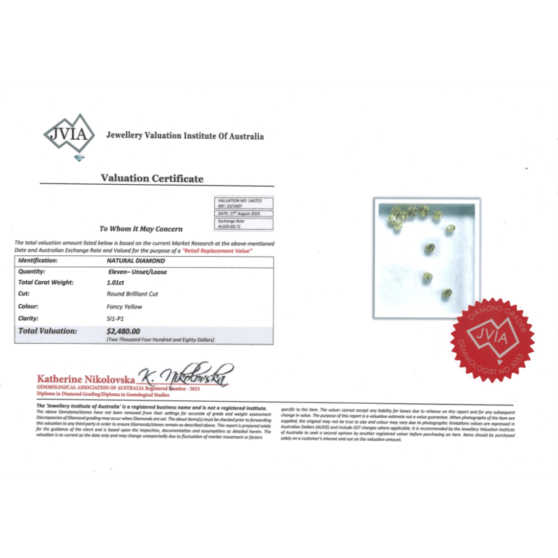 1.01CT TDW X 11, NATURAL FANCY YELLOW DIAMONDS