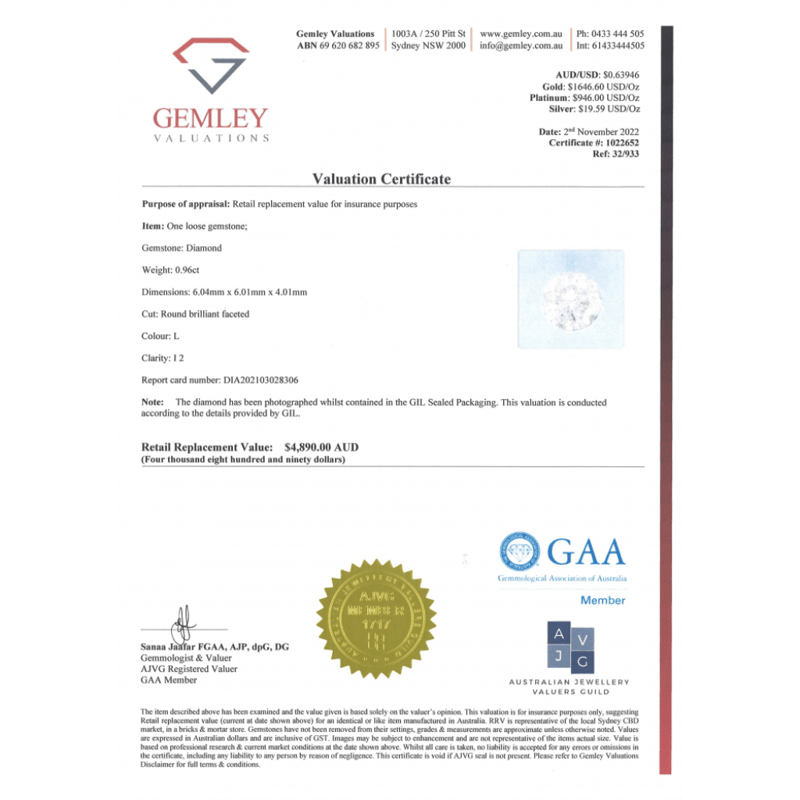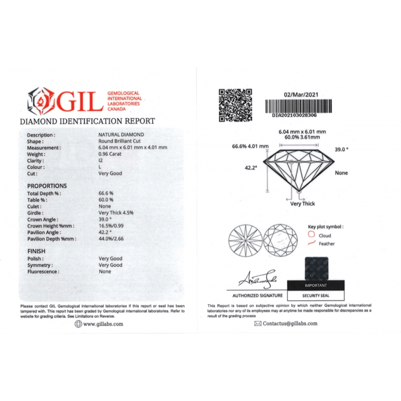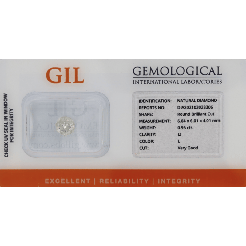 Round Brilliant Faceted Cut, L Colour, I2 Clarity, Loose, Unset. Stone Comes With Gil Report: Dia202103028306.