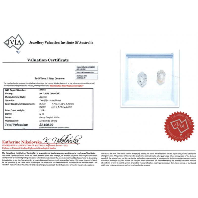Asscher Cuts, Fancy Greyish-White, I2-I3 Clarity, Loose, Unset.