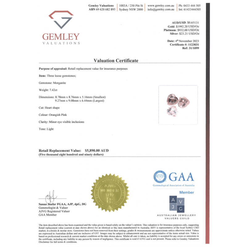 7.42CT TSW X 3, NATURAL MORGANITES
