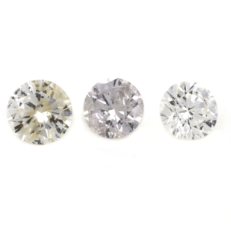 Round Brilliant Cut, Fancy Pink/Yellow, P1-P2 Clarity, Loose, Unset.