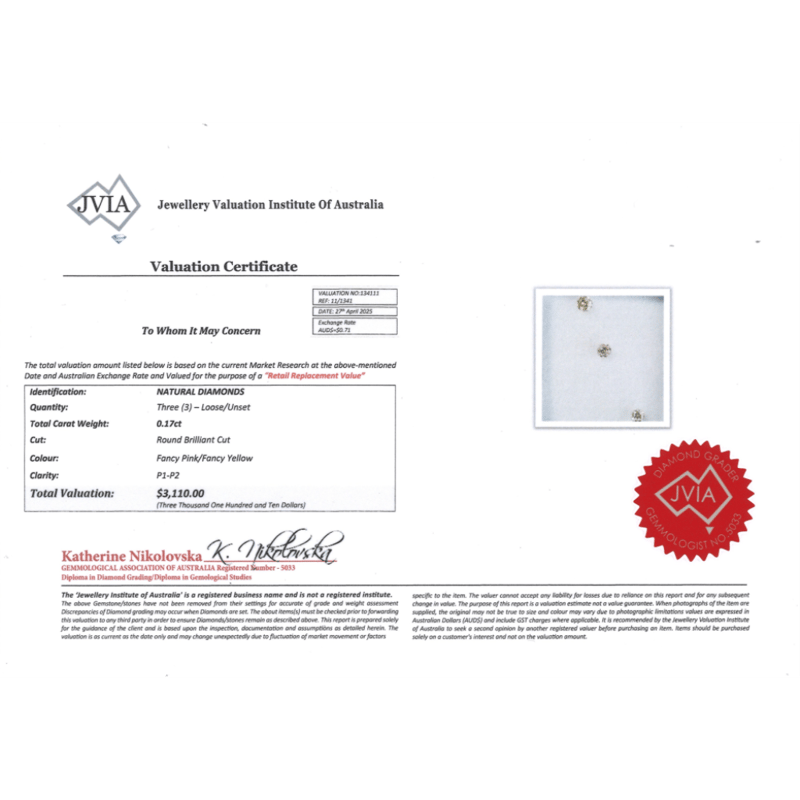 0.17CT TDW X 3, NATURAL FANCY PINK/YELLOW DIAMONDS