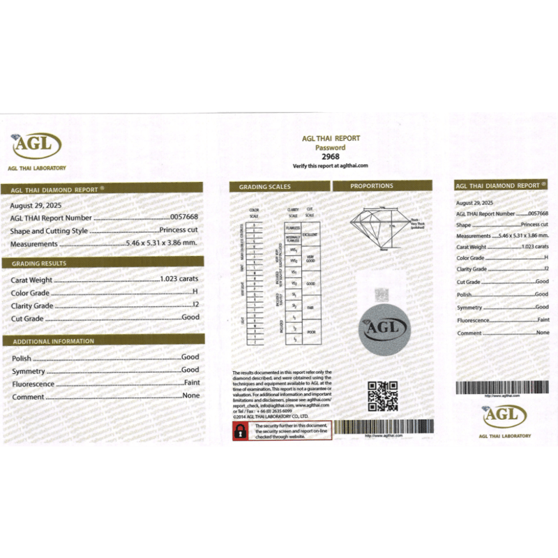 Princess Cut, H Colour, I2 Clarity, Loose, Unset. Stone Comes Sealed With Agl Report: 0057668.