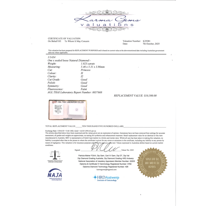 1.023CT CERTIFIED, NATURAL DIAMOND