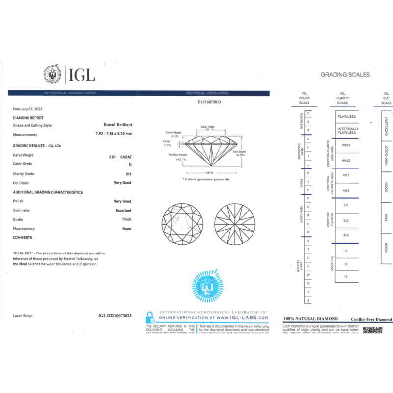 Round Brilliant Cut, E Colour, Si3 Clarity, Loose, Unset. Stone Comes With Igl Report: D2210073823.