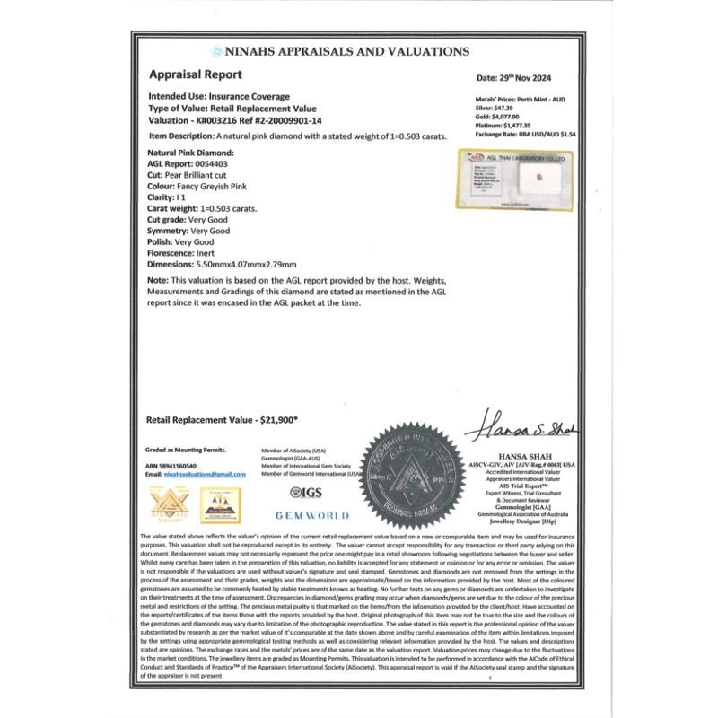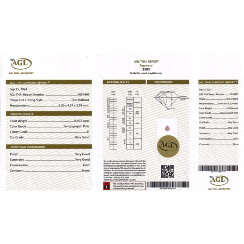 Pear Brilliant Cut, Fancy Greyish-Pink, I1 Clarity, Loose, Unset. Stone Comes Sealed With Agl Report: 0054403.