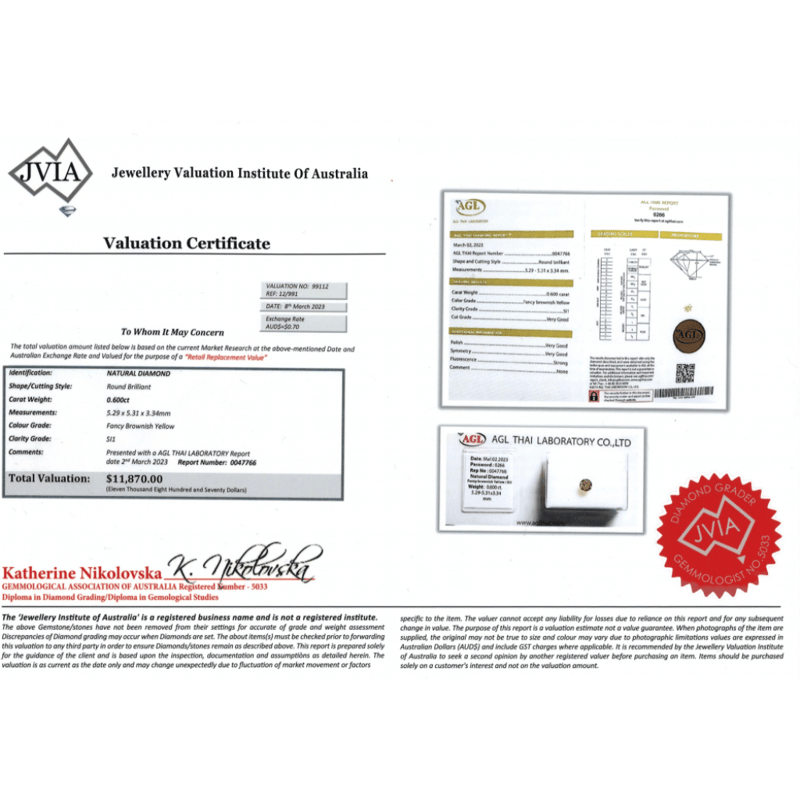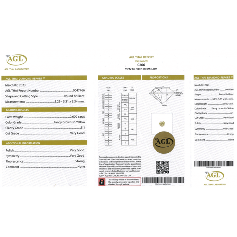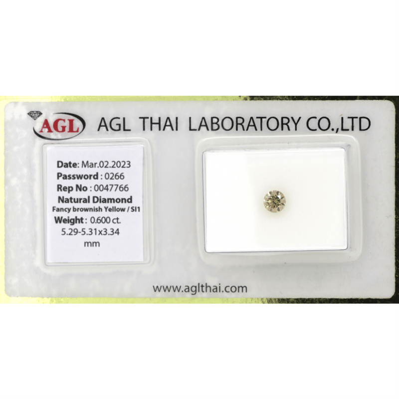 Round Brilliant Cut, Fancy Brownish-Yellow, Si1 Clarity, Loose, Unset. Stone Comes Sealed With Agl Report: 0047766.