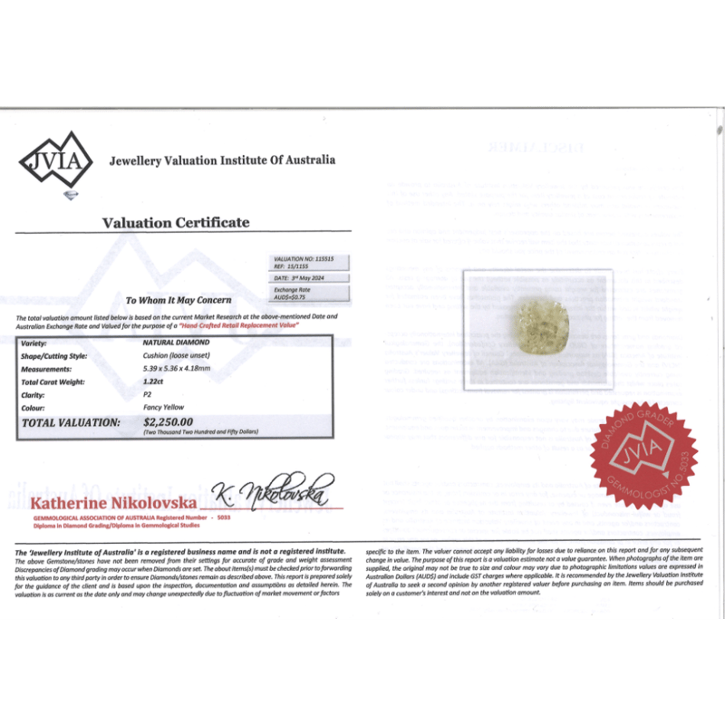 Cushion Cut, Fancy Yellow, P2, Loose, Unset.