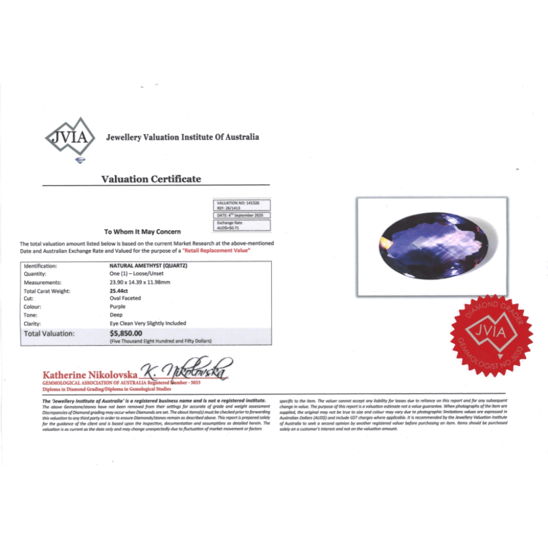 Oval Faceted Cut, Deep Purple, Eye Clean/Slightly Included, Loose, Unset.
