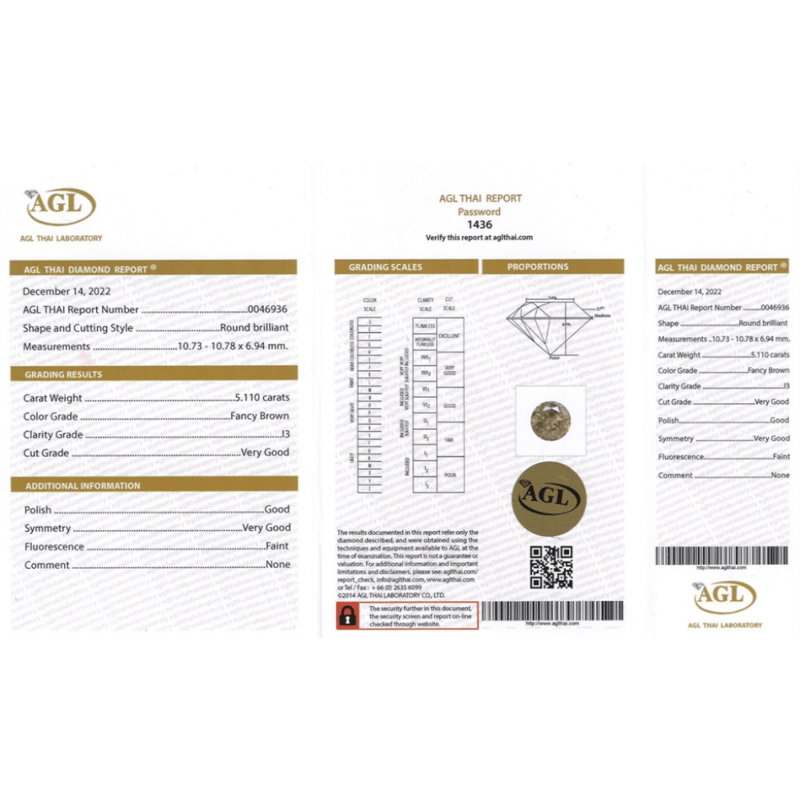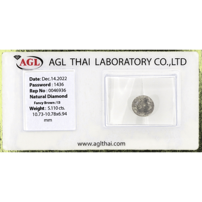 Round Brilliant Cut, Fancy Brown, I3 Clarity, Loose, Unset. Stone Comes Sealed With Agl Report: 0046936.