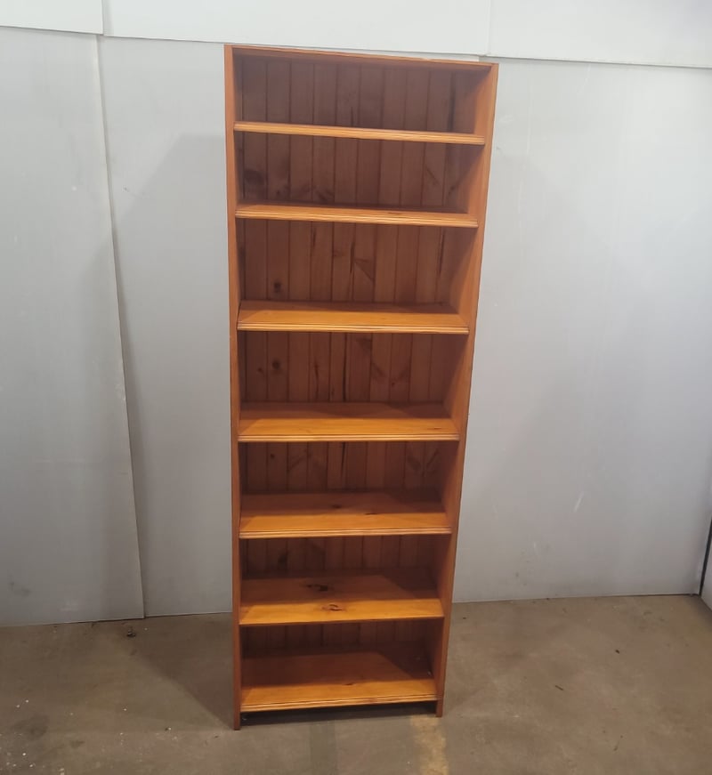 Wooden Bookcase, 7 shelves. Used Condition.210cm tall, 75cm wide and 31cm deep.