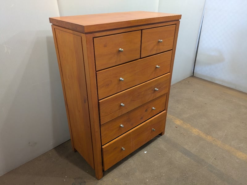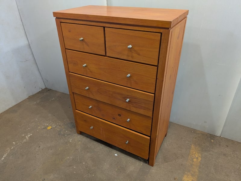 Wooden 5 Drawer Set. Used Condition. 120cm tall, 87cm wide and 45cm deep.