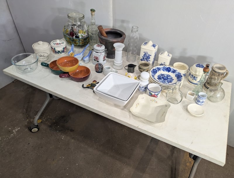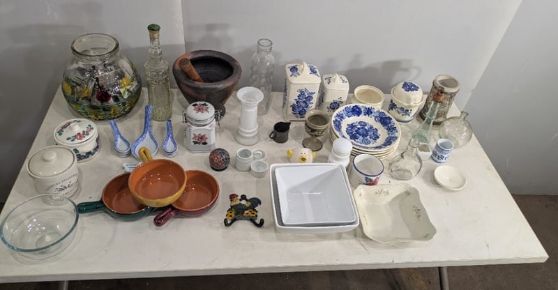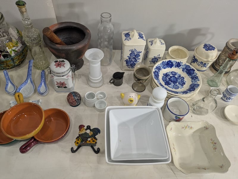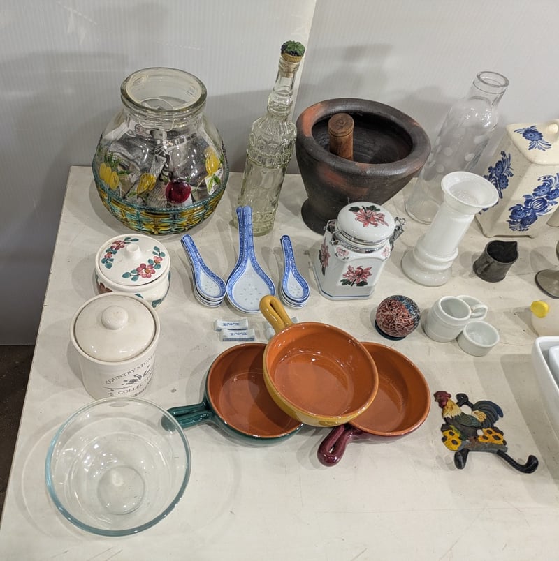 Box with Various and Miscellaneous Kitchen Items. Used Condition. Sold as Lot.