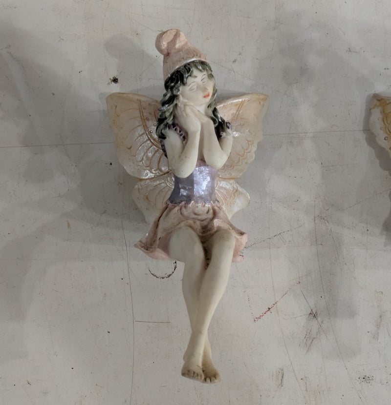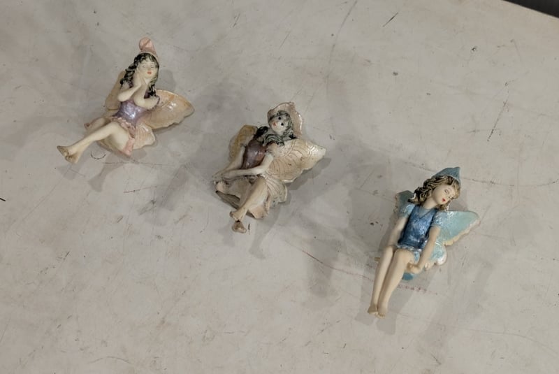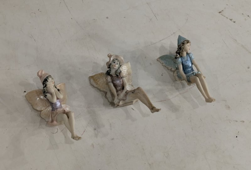 3 Stone Carved Garden Fairies. Sold as Lot.