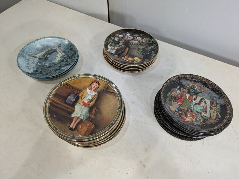Large Assortment of Collectable Plates. Norman Rockwell, Bradex and More. Used Condition. Sold as Lot.