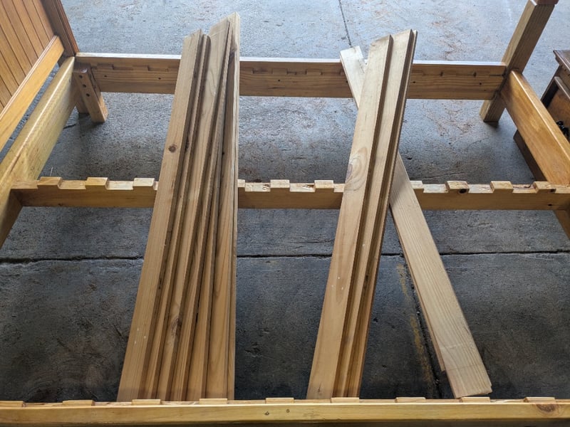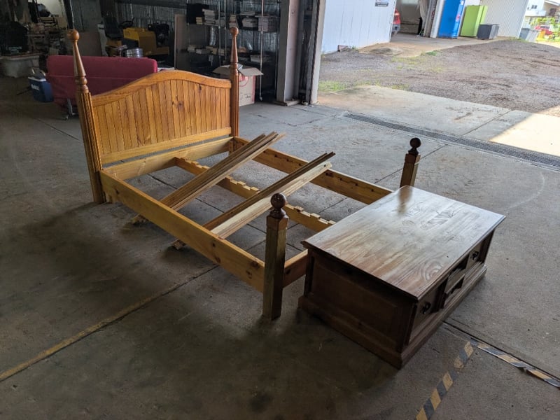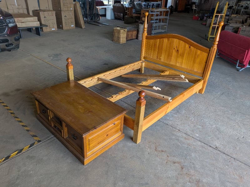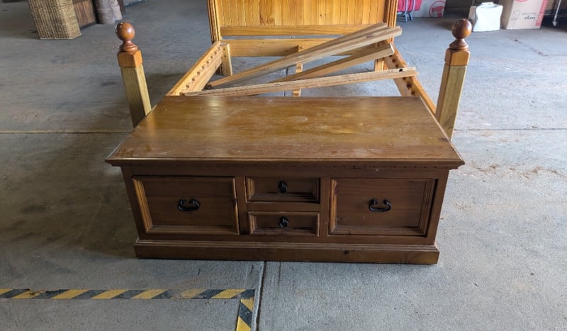 Bed Frame with Front Set of Drawers. Used Condition. Sold as Lot. Bed Frame is 280cm long by 168cm wide