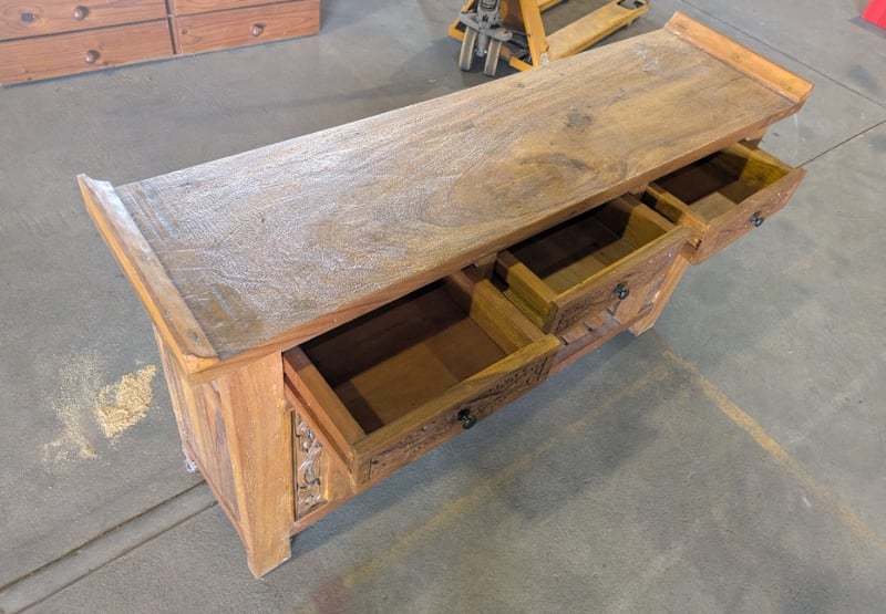 Timber Console Table with 3 Drawers. Used Condition.