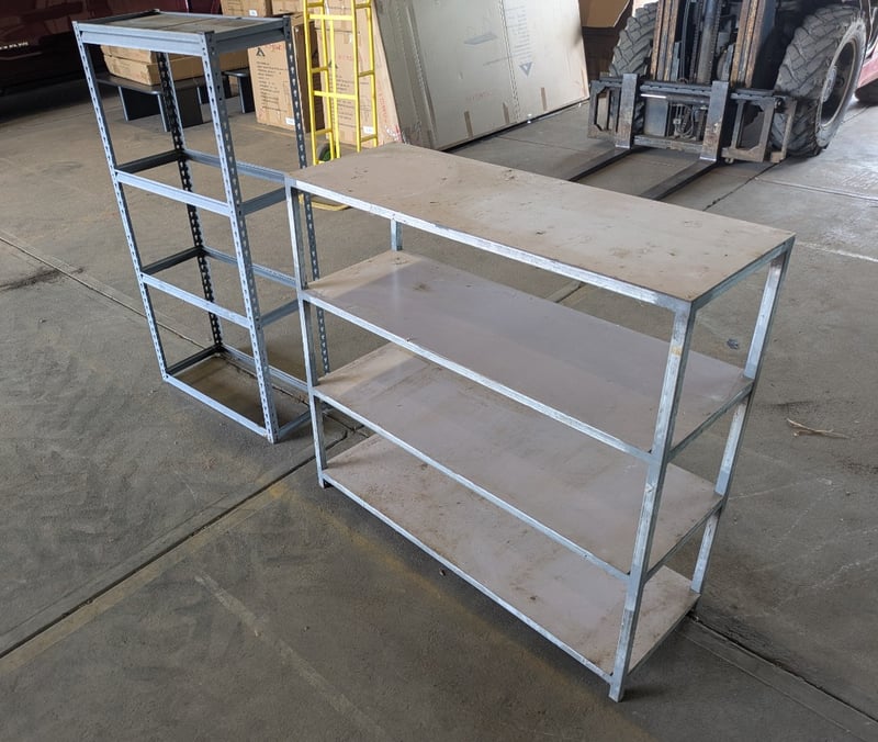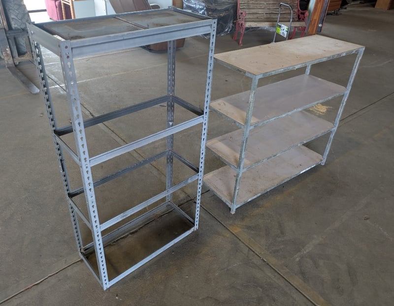 2 Metal Storage Shelves. 1 is missing cross boards. Used Condition. Sold as Lot.