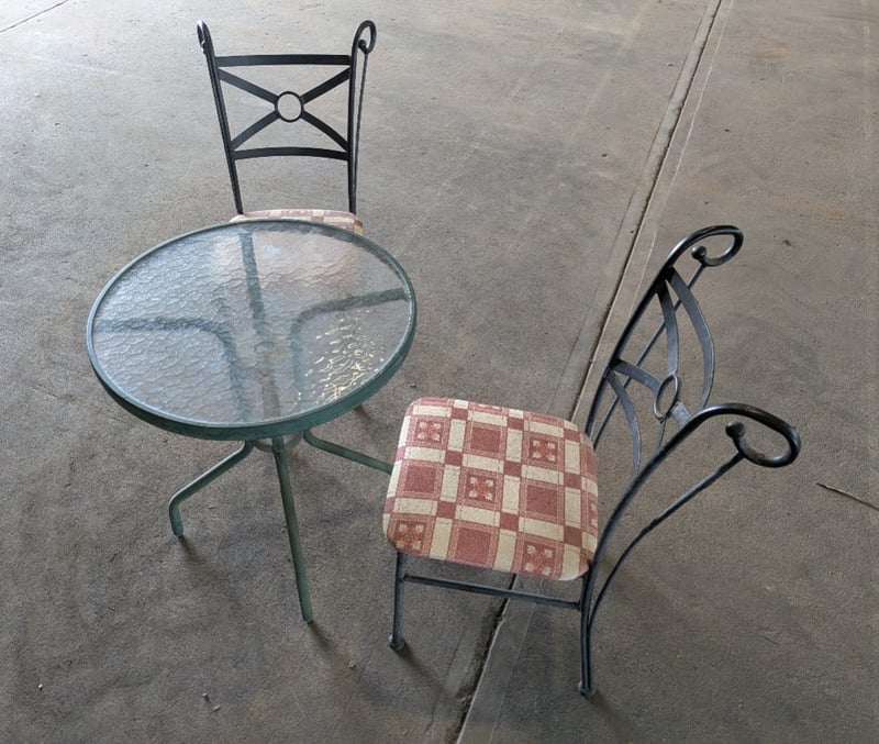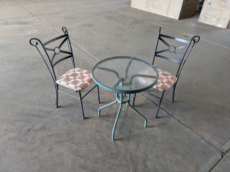 Outdoor Table and 2 Chairs. Used Condition. Sold as Lot.