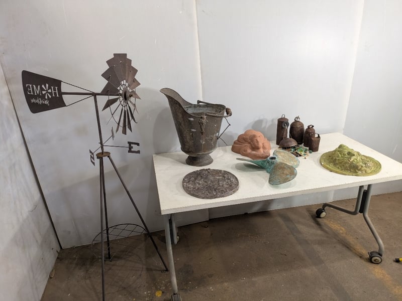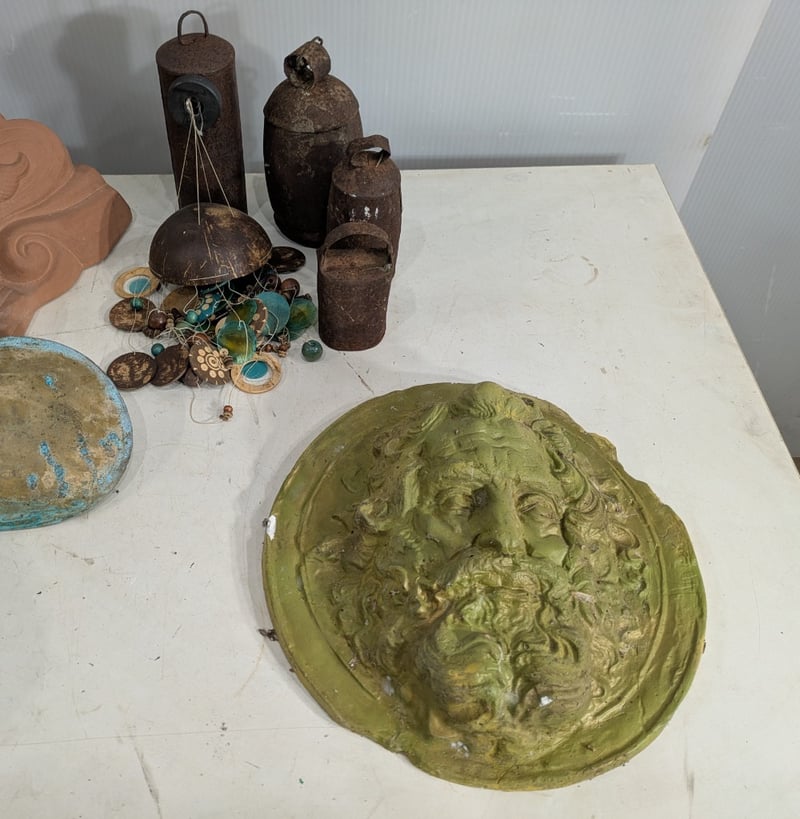 Various Garden Decorations including a Windmill, Wind Chimes and More. Used Condition. Sold as Lot.