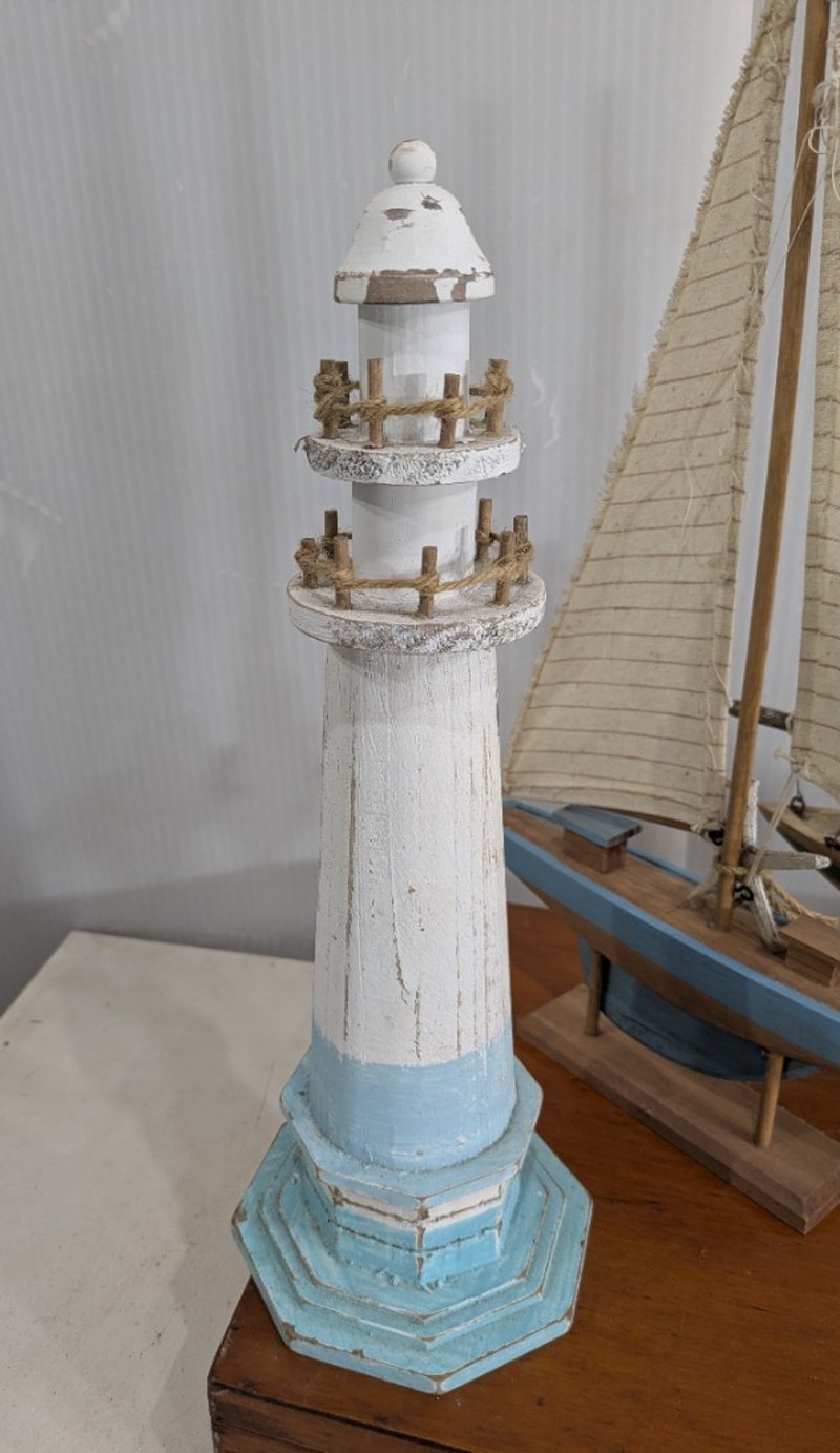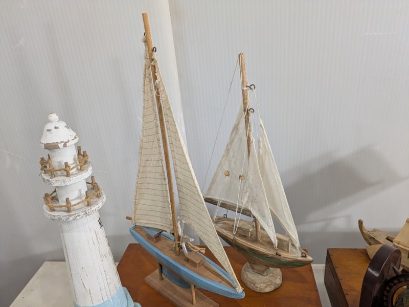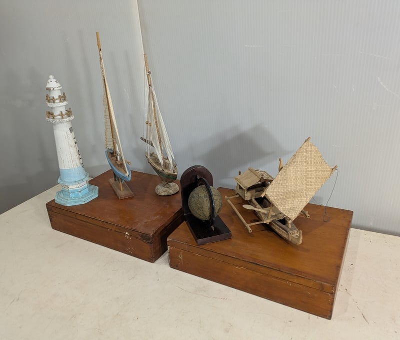 Various Nautical Miniatures including a Lighthouse, Boats and More. Sold as Lot.