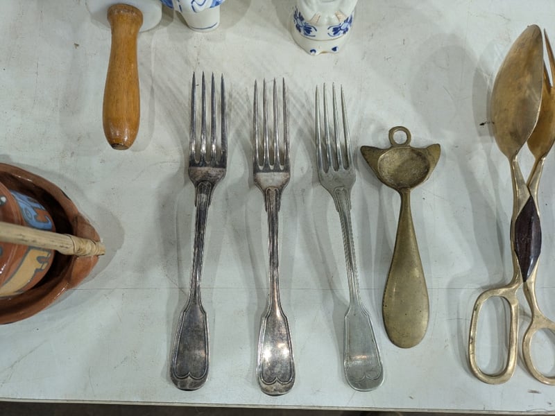 Various Kitchen Collectables including 3 Christofle Chinon Silver Plated Dorks, Sonic Silver Plated Spoons and More. Sold as Lot.