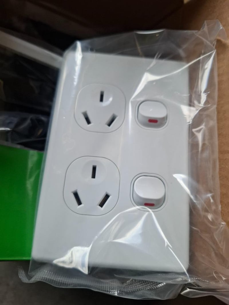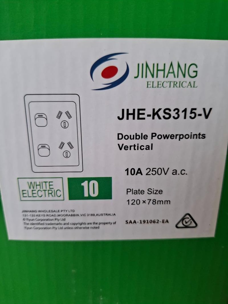 RRP $1300 Combined, 10A Switched Double Wall Socket Slim VerticalQTY: 100pcsMODEL: JHE-KS315-VPRODUCT DIMENSIONS:78mm x 120 mm