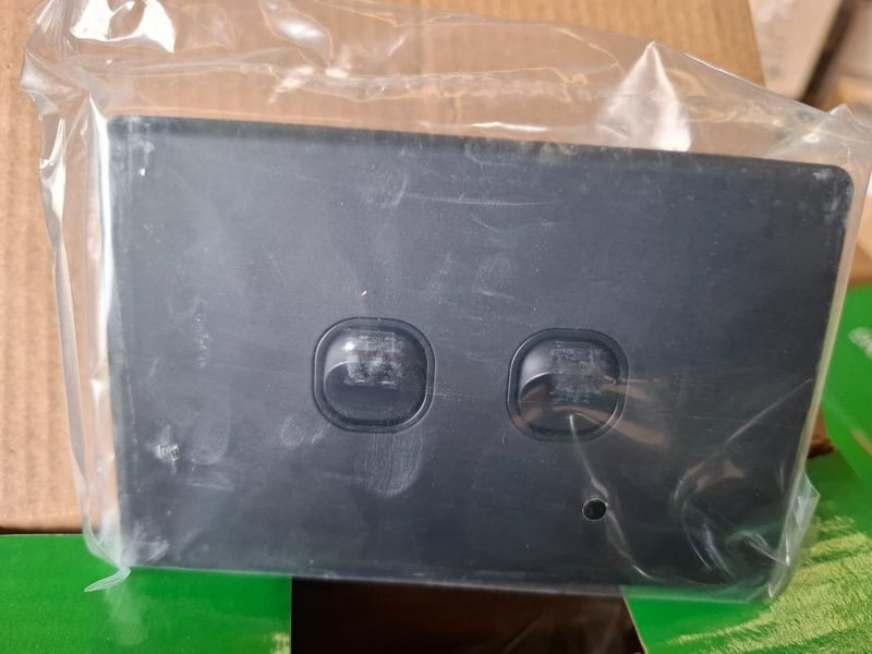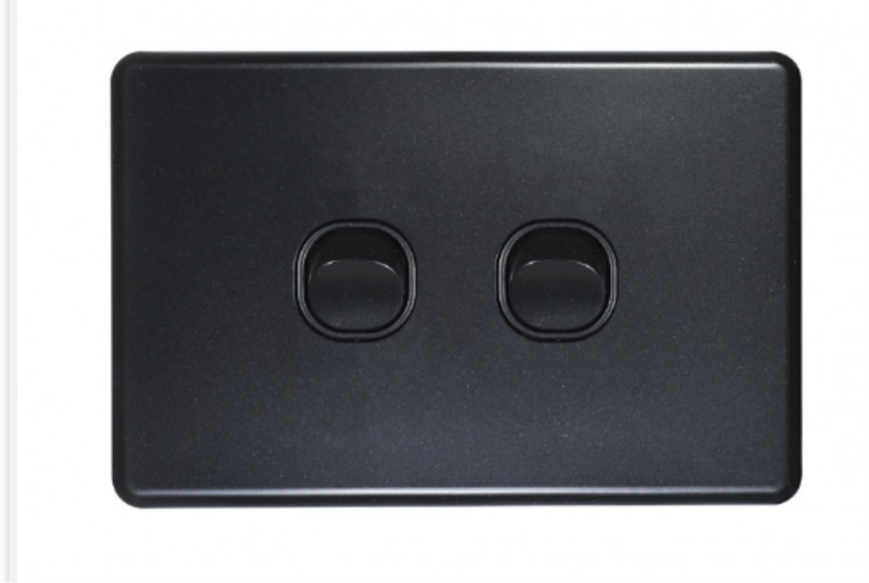 RRP $4200 Combined, 10A 2 Gang Wall Switch Slim BlackQTY: 100pcsMODEL: JHE-KS304-BKPRODUCT DIMENSIONS: 120mm x 78mm