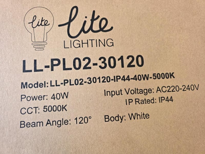 RRP $315 Combined, LL 40W Panels 30120 5000K V2QTY: 5pcsMODEL: LL-PL02-30120-IP44-40W-5000KPRODUCT DIMENSIONS: 1200mm x 300mm