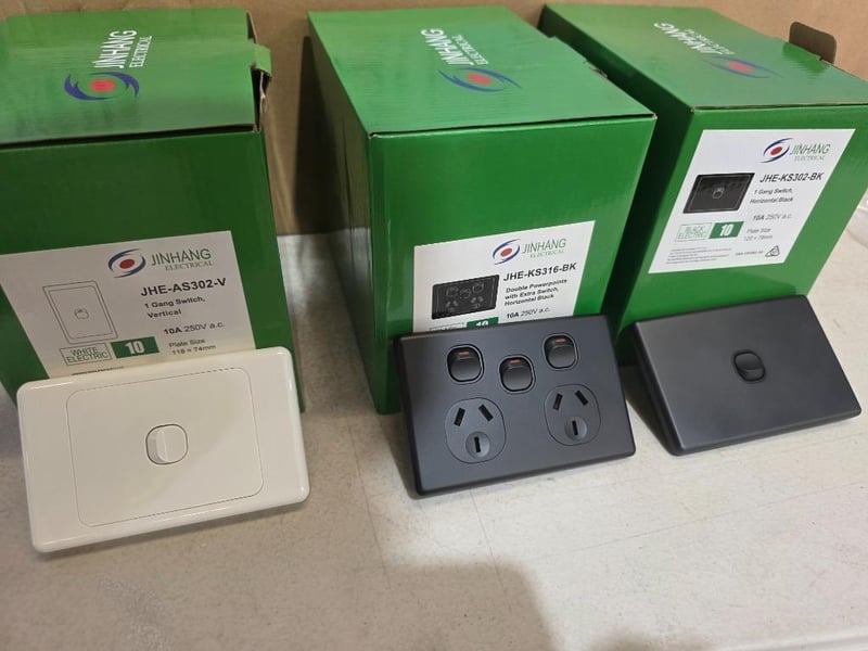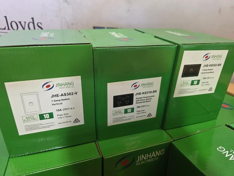 Assorted Box Of 1 Gang Switches And Double Powerpoints With Extra SwitchQTY: 100pcsModels Include: JHE-AS302-VJHE-KS316-BKJHE-KS302-BKSold As Lot