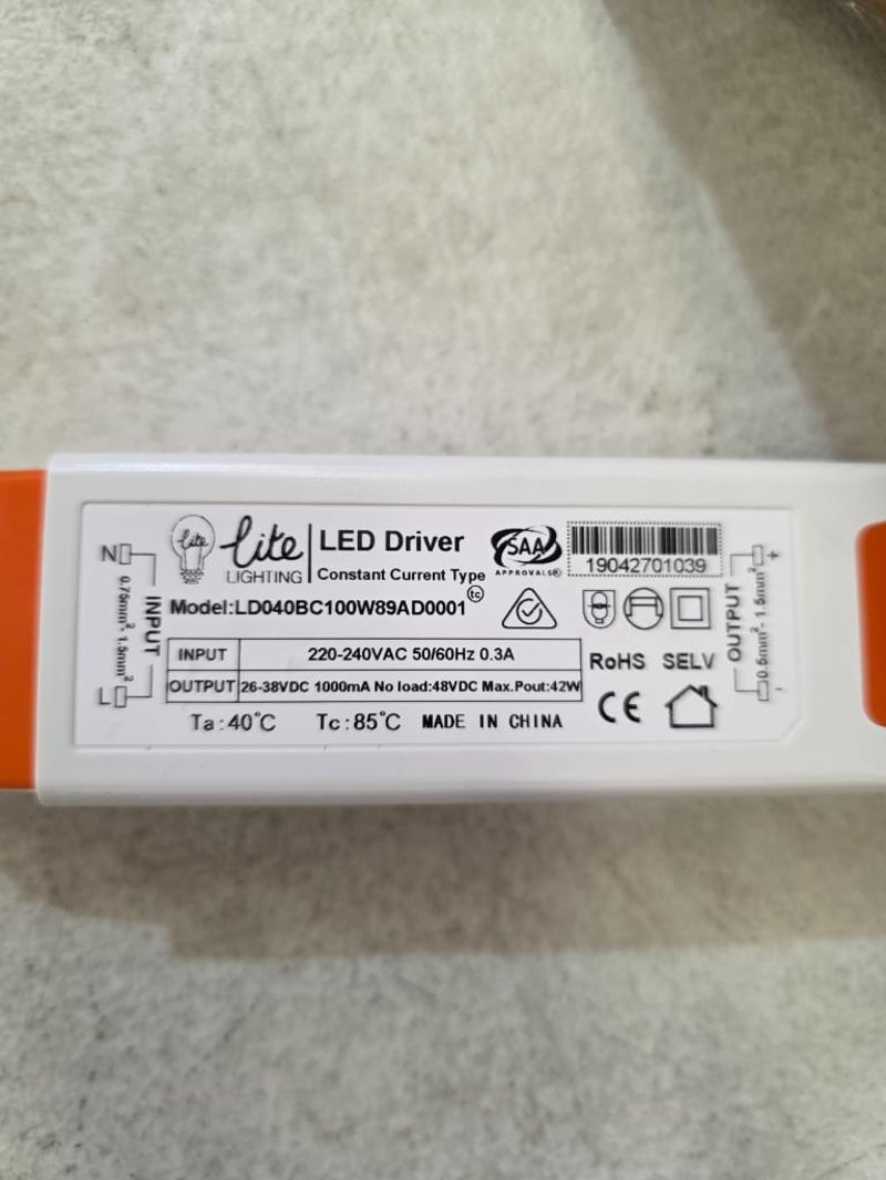 RRP $1200 Combined, LL LED Non-Dimmable Panel DRIVER 40WQTY: 40pcsMODEL: LL-PL02-40W-DriverPRODUCT DIMENSIONS: 130mm x 37mm