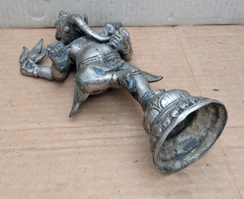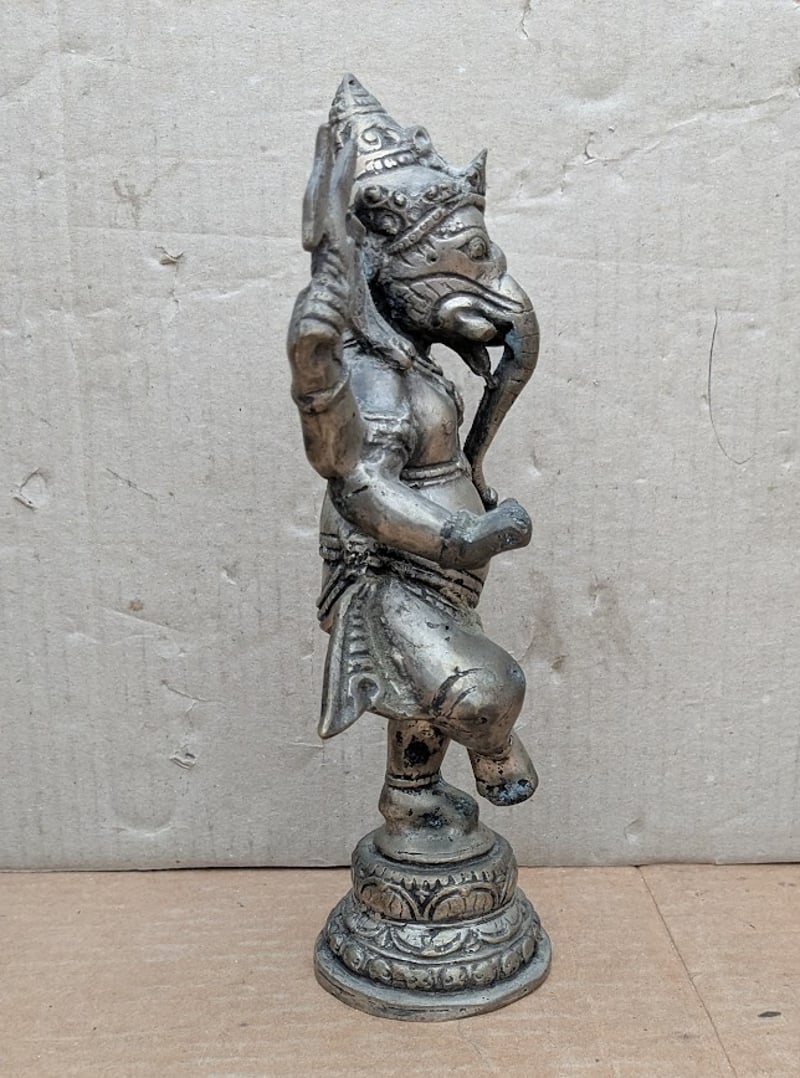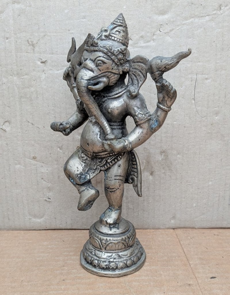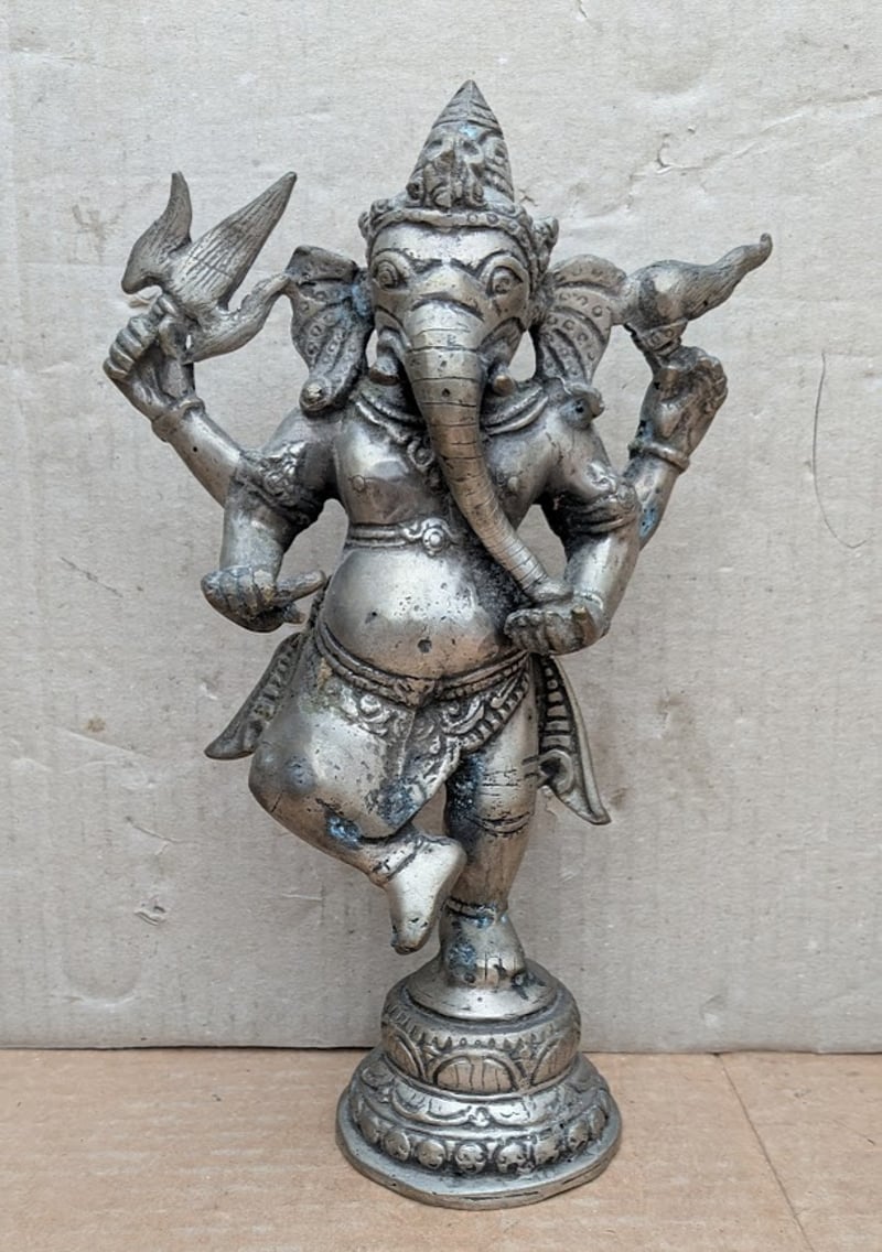 STATUE OF HINDU GOD , LORD GANESH WHITE BRASS