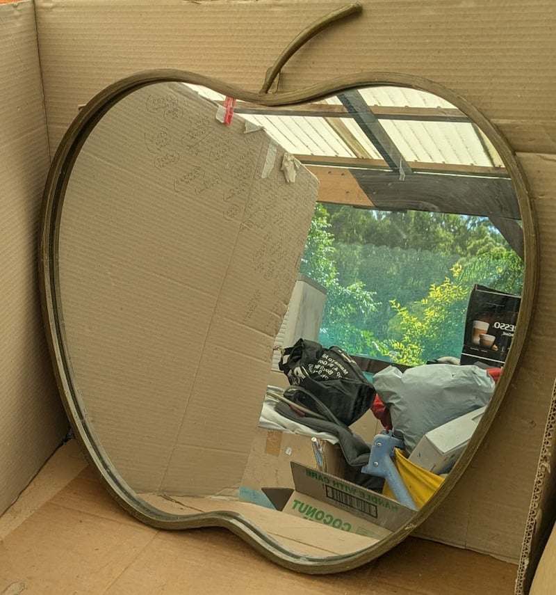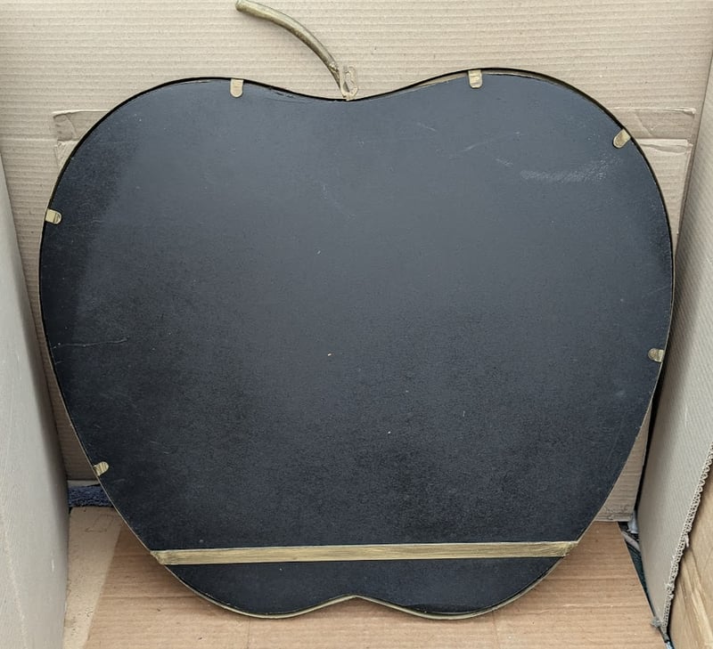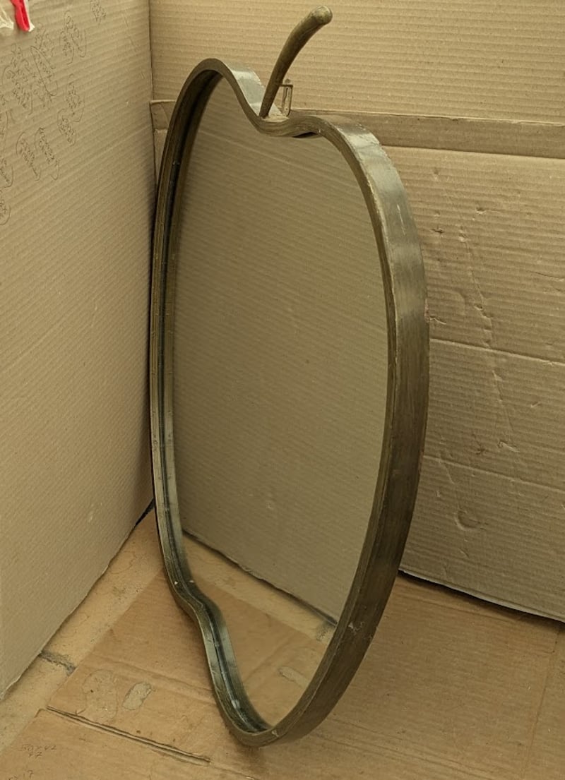 APPLE SHAPED WALL MIRROR, BRASS COLOR METAL FRAME
