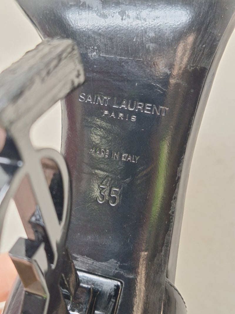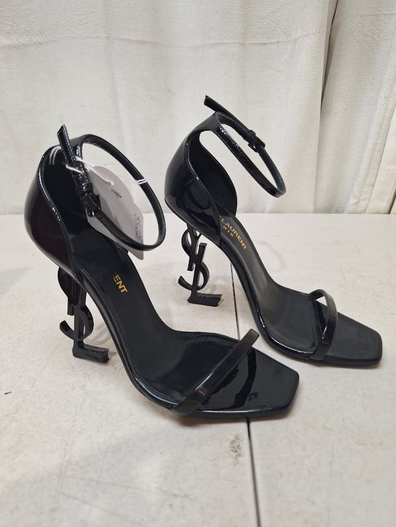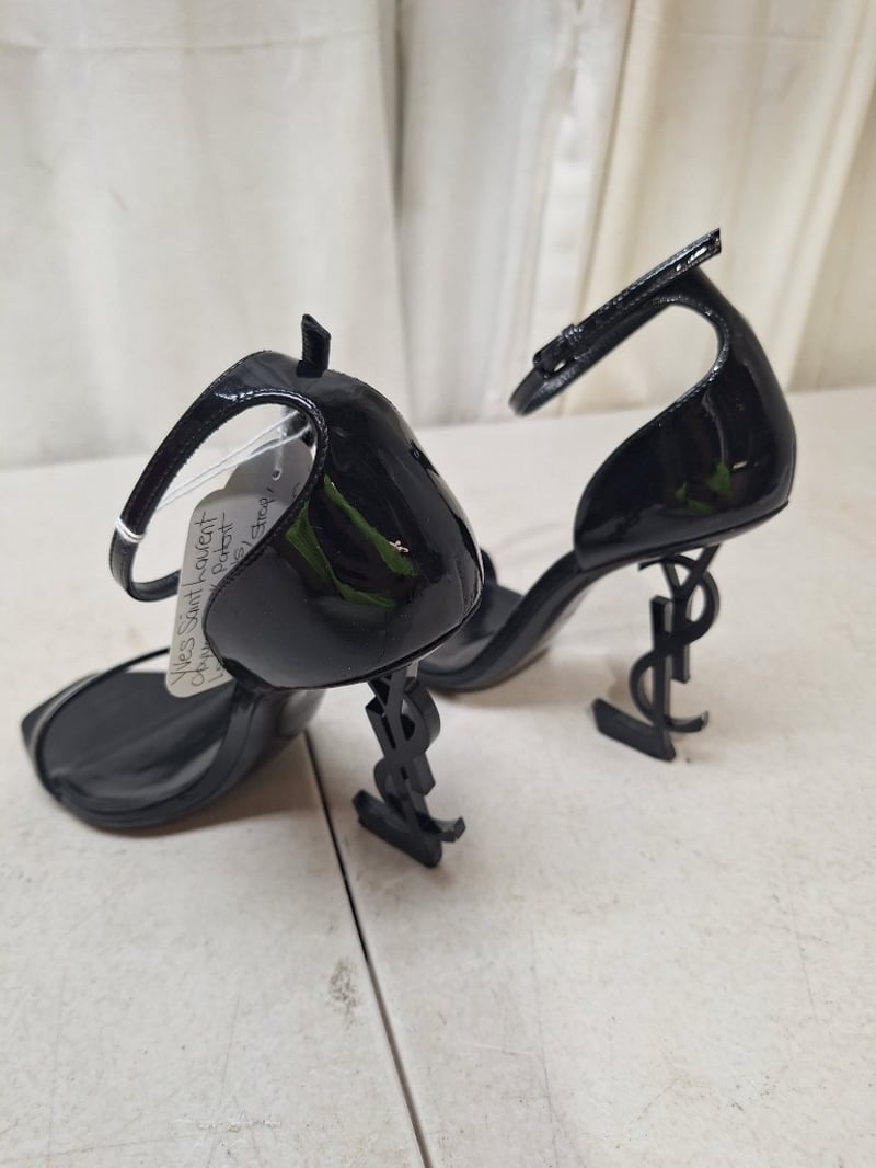 Saint Laurent Opyum Sandals In Black Patent Calfskin Leather With A 10.5cm Cassandre Heel, Size 35