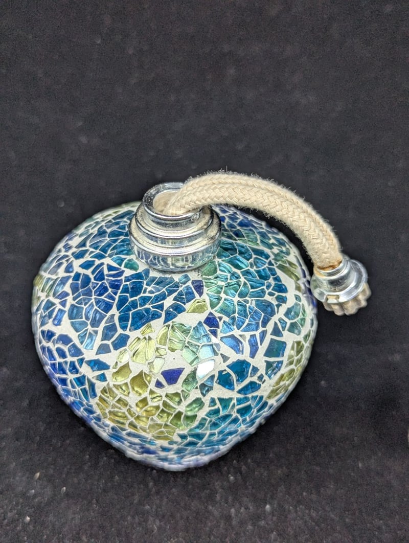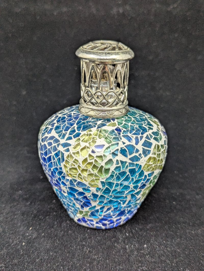 Lamp Features Blue And Green Mosaic Pattern Exterior, Includes Blue Glass Bottle Stopper